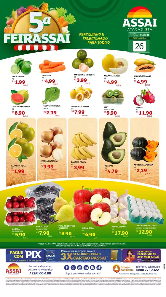 Bem-vindo à loja da Assaí Atacadista no Tiendeo, onde você pode descobrir as melhores ofertas, promoções e catálogos desta marca renomada no setor de Supermercados. Nossa loja física está localizada em Avenida Filadélfia, 3576, Araguaína, e nela você encontrará uma ampla gama de produtos de qualidade que ajudarão você a economizar durante todo o março de 2026.