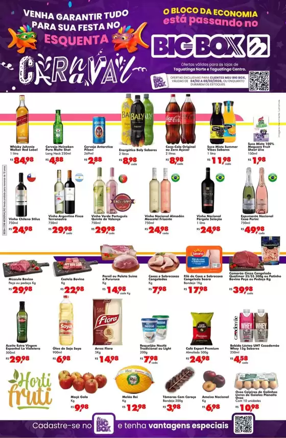 Bem-vindo à loja da Big Box no Tiendeo, onde você pode descobrir as melhores ofertas, promoções e catálogos desta marca renomada no setor de Supermercados. Nossa loja física está localizada em SMDB Conj. 12 BL I Térreo, Brasília, e nela você encontrará uma ampla gama de produtos de qualidade que ajudarão você a economizar durante todo o fevereiro de 2026.