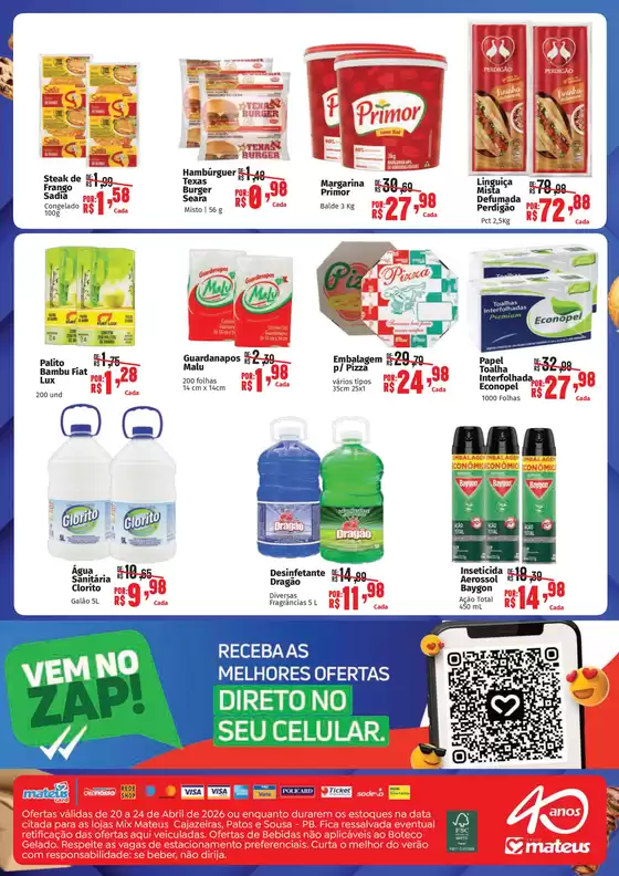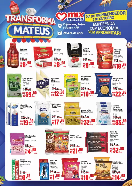 Bem-vindo à loja da Supermercados Mateus no Tiendeo, onde você pode descobrir as melhores ofertas, promoções e catálogos desta marca renomada no setor de Supermercados. Nossa loja física está localizada em Rua Ivanez Rolim 518, Cajazeiras, e nela você encontrará uma ampla gama de produtos de qualidade que ajudarão você a economizar durante todo o abril de 2026.