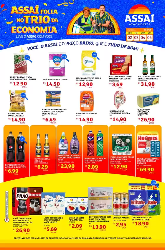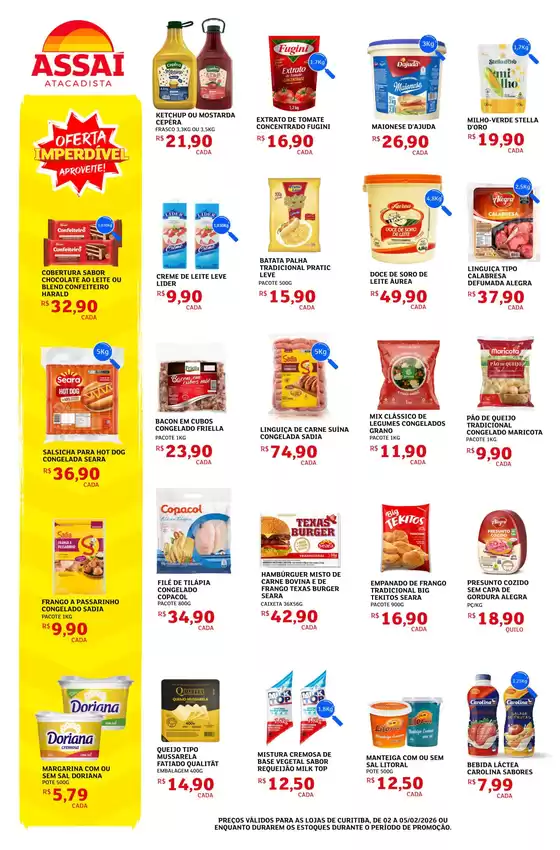 Bem-vindo à loja da Assaí Atacadista no Tiendeo, onde você pode descobrir as melhores ofertas, promoções e catálogos desta marca renomada no setor de Supermercados. Nossa loja física está localizada em BR-476, 1801, Curitiba, e nela você encontrará uma ampla gama de produtos de qualidade que ajudarão você a economizar durante todo o fevereiro de 2026.