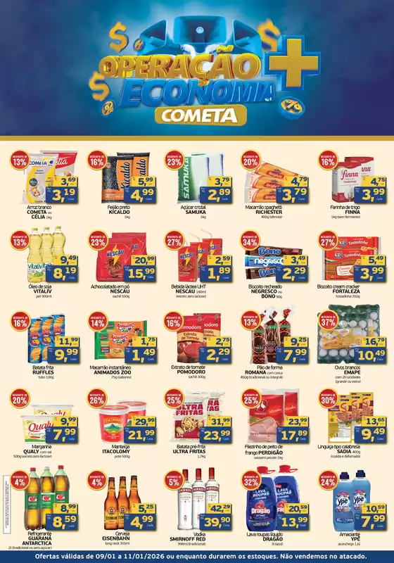 Bem-vindo à loja da Cometa Supermercados no Tiendeo, onde você pode descobrir as melhores ofertas, promoções e catálogos desta marca renomada no setor de Supermercados. Nossa loja física está localizada em Av. Osório De Paiva, 2951, Fortaleza, e nela você encontrará uma ampla gama de produtos de qualidade que ajudarão você a economizar durante todo o janeiro de 2026.