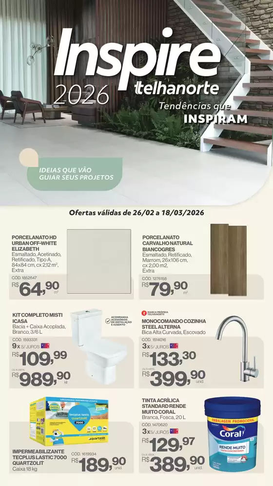 Bem-vindo à loja da Telhanorte no Tiendeo, onde você pode descobrir as melhores ofertas, promoções e catálogos desta marca renomada no setor de Material de Construção. Nossa loja física está localizada em Avenida Presidente Tancredo De Almeida Neves, 1261, Guarulhos, e nela você encontrará uma ampla gama de produtos de qualidade que ajudarão você a economizar durante todo o março de 2026.