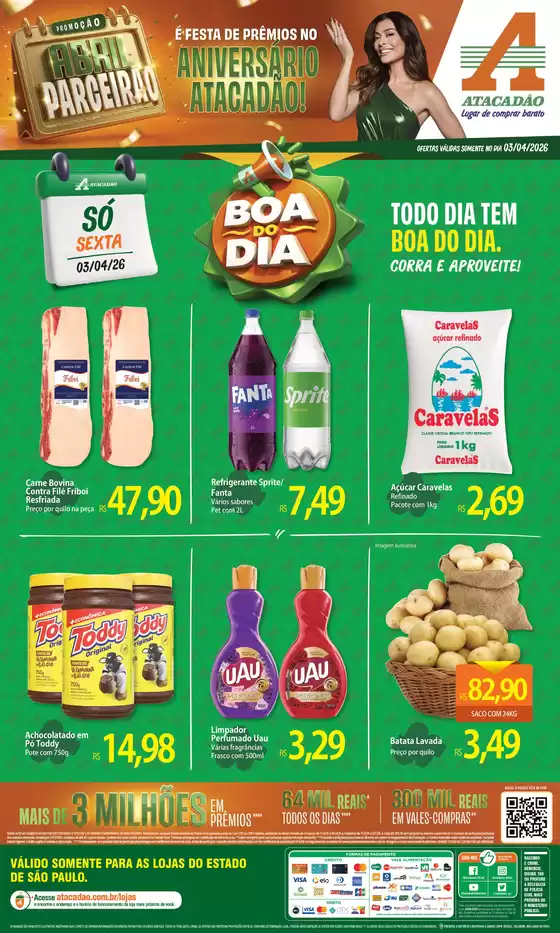 Não perca as ofertas da Atacadão nas lojas de Itatiba e fique atualizado com os melhores preços durante abril de 2026. No Tiendeo, você sempre encontrará as melhores opções de compra em Itatiba. Comece agora mesmo a explorar as lojas e promoções que preparamos para você!