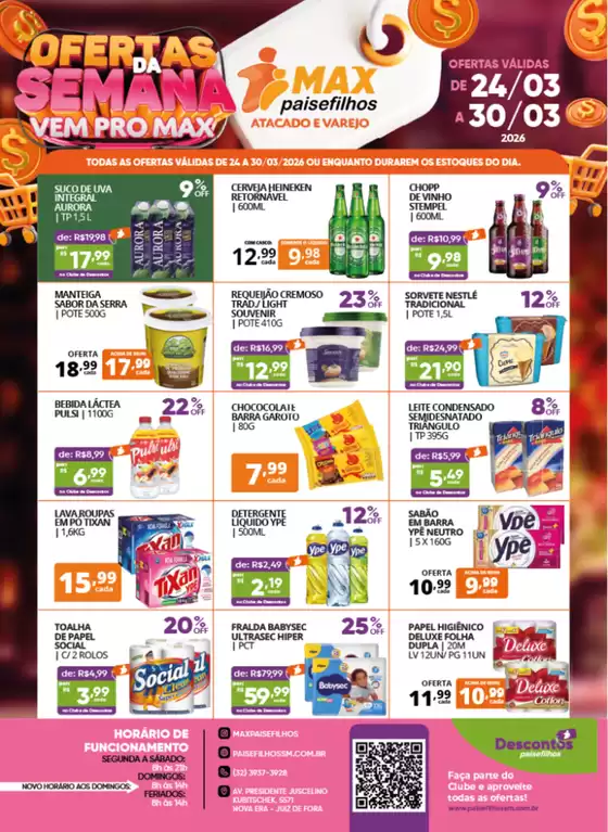 Não perca a oportunidade de visitar a loja da Pais e Filhos Supermercados em Av. Presidente Juscelino Kubitschek, 789 para uma experiência de compras completa. Convidamos você a explorar as promoções que preparamos para você neste março e a ficar informado sobre as melhores ofertas da Pais e Filhos Supermercados em Juiz de Fora. Visite-nos e comece a economizar hoje mesmo!