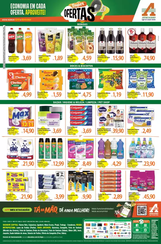 Bem-vindo à loja da Atacadão no Tiendeo, onde você pode descobrir as melhores ofertas, promoções e catálogos desta marca renomada no setor de Supermercados. Nossa loja física está localizada em Av. Santos Dumont, 5893 - Portão, Lauro de Freitas, e nela você encontrará uma ampla gama de produtos de qualidade que ajudarão você a economizar durante todo o março de 2026.