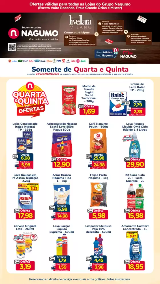 Bem-vindo à loja da Nagumo no Tiendeo, onde você pode descobrir as melhores ofertas, promoções e catálogos desta marca renomada no setor de Supermercados. Nossa loja física está localizada em Av. Henrique Eroles, 513, Mogi das Cruzes, e nela você encontrará uma ampla gama de produtos de qualidade que ajudarão você a economizar durante todo o março de 2026.