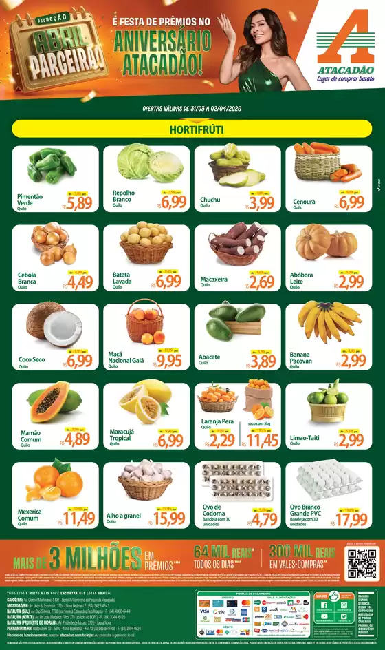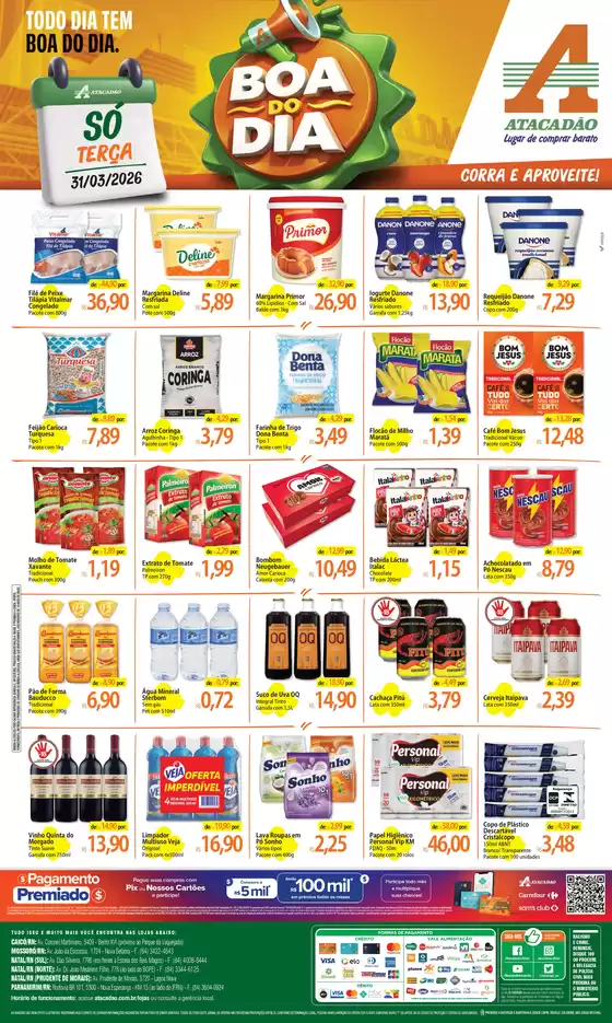 Bem-vindo à loja da Atacadão no Tiendeo, onde você pode descobrir as melhores ofertas, promoções e catálogos desta marca renomada no setor de Supermercados. Nossa loja física está localizada em Avenida Dr João Medeiros Filho, 778, Natal, e nela você encontrará uma ampla gama de produtos de qualidade que ajudarão você a economizar durante todo o abril de 2026.