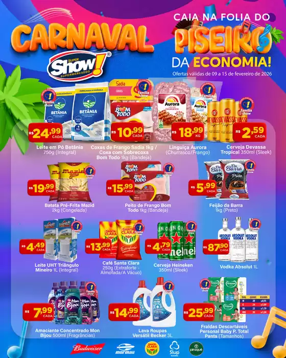 Bem-vindo à loja da Super Show no Tiendeo, onde você pode descobrir as melhores ofertas, promoções e catálogos desta marca renomada no setor de Supermercados. Nossa loja física está localizada em Rua Dr. Mario Negocio, 1875, Natal, e nela você encontrará uma ampla gama de produtos de qualidade que ajudarão você a economizar durante todo o fevereiro de 2026.