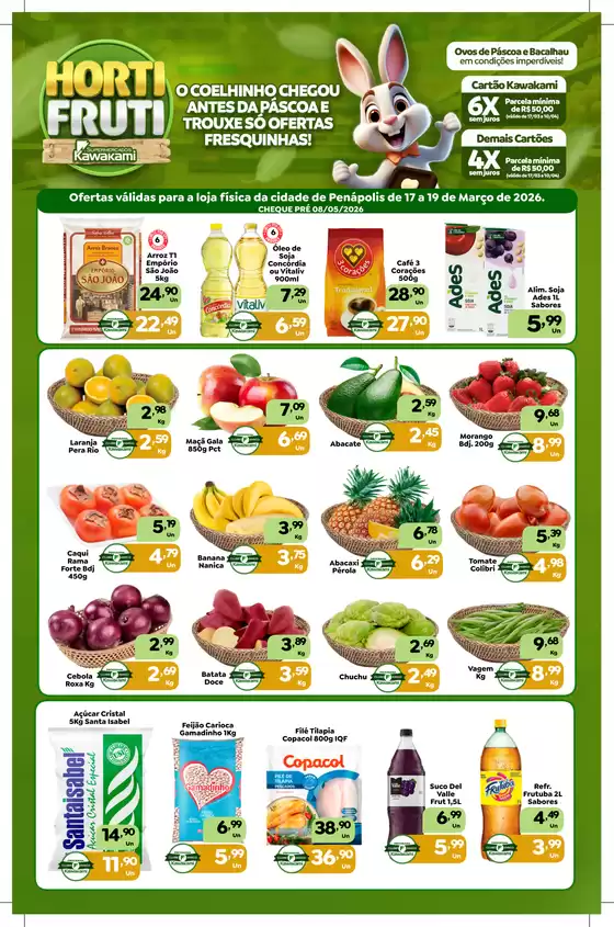 Bem-vindo à loja da Supermercados Kawakami no Tiendeo, onde você pode descobrir as melhores ofertas, promoções e catálogos desta marca renomada no setor de Supermercados. Nossa loja física está localizada em Rod Sargento Luciano Arnaldo Colovan, 1055 Loja 001, Penápolis, e nela você encontrará uma ampla gama de produtos de qualidade que ajudarão você a economizar durante todo o março de 2026.