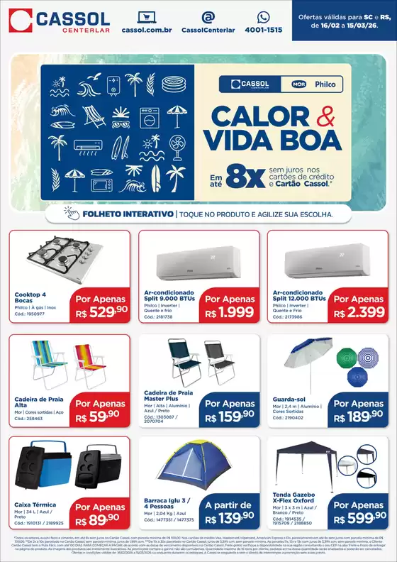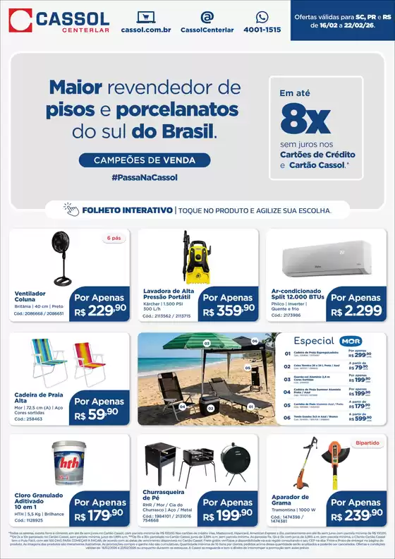 Bem-vindo à loja da Cassol no Tiendeo, onde você pode descobrir as melhores ofertas, promoções e catálogos desta marca renomada no setor de Material de Construção. Nossa loja física está localizada em Av. Sertorio, 8000, Porto Alegre, e nela você encontrará uma ampla gama de produtos de qualidade que ajudarão você a economizar durante todo o fevereiro de 2026.