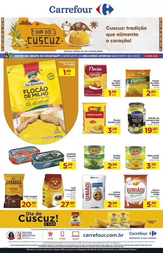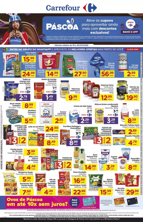 Bem-vindo à loja da Carrefour no Tiendeo, onde você pode descobrir as melhores ofertas, promoções e catálogos desta marca renomada no setor de Supermercados. Nossa loja física está localizada em Avenida Pres. Castelo Branco, 2400, Ribeirão Preto, e nela você encontrará uma ampla gama de produtos de qualidade que ajudarão você a economizar durante todo o março de 2026.