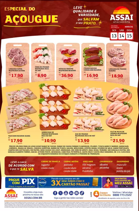 Bem-vindo à loja da Assaí Atacadista no Tiendeo, onde você pode descobrir as melhores ofertas, promoções e catálogos desta marca renomada no setor de Supermercados. Nossa loja física está localizada em Avenida Brasil, 2.251, São Cristovão, Rio de Janeiro, e nela você encontrará uma ampla gama de produtos de qualidade que ajudarão você a economizar durante todo o março de 2026.