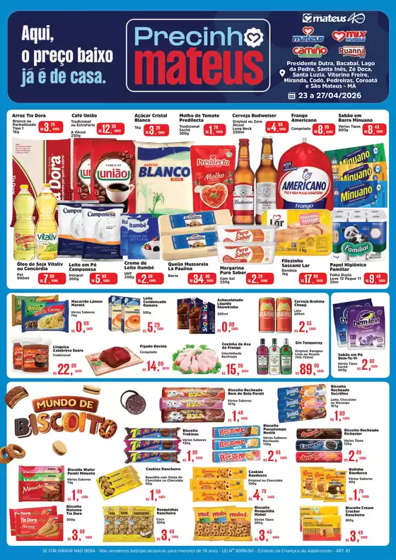 Bem-vindo à loja da Supermercados Mateus no Tiendeo, onde você pode descobrir as melhores ofertas, promoções e catálogos desta marca renomada no setor de Supermercados. Nossa loja física está localizada em Avenida Castelo Branco, N. 2790, Santa Inês, e nela você encontrará uma ampla gama de produtos de qualidade que ajudarão você a economizar durante todo o abril de 2026.