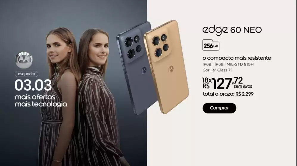 Bem-vindo à loja da Motorola no Tiendeo, onde você pode descobrir as melhores ofertas, promoções e catálogos desta marca renomada no setor de Eletrônica e Magazines. Nossa loja física está localizada em Av. Roque Petroni Júnior, 1089, São Paulo, e nela você encontrará uma ampla gama de produtos de qualidade que ajudarão você a economizar durante todo o março de 2026.