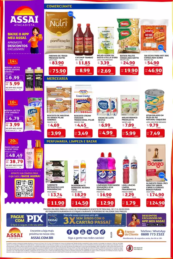 Bem-vindo à loja da Assaí Atacadista no Tiendeo, onde você pode descobrir as melhores ofertas, promoções e catálogos desta marca renomada no setor de Supermercados. Nossa loja física está localizada em Avenida Waldemar Ignácio de Oliveira, Serra Talhada, e nela você encontrará uma ampla gama de produtos de qualidade que ajudarão você a economizar durante todo o fevereiro de 2026.