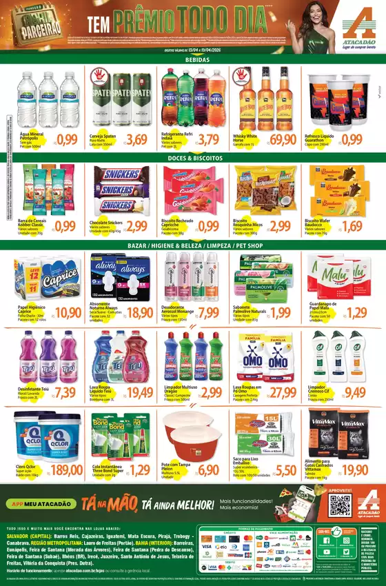 Bem-vindo à loja da Atacadão no Tiendeo, onde você pode descobrir as melhores ofertas, promoções e catálogos desta marca renomada no setor de Supermercados. Nossa loja física está localizada em Avenida São Paulo, 2500 - Vila Verde, Teixeira de Freitas, e nela você encontrará uma ampla gama de produtos de qualidade que ajudarão você a economizar durante todo o abril de 2026.