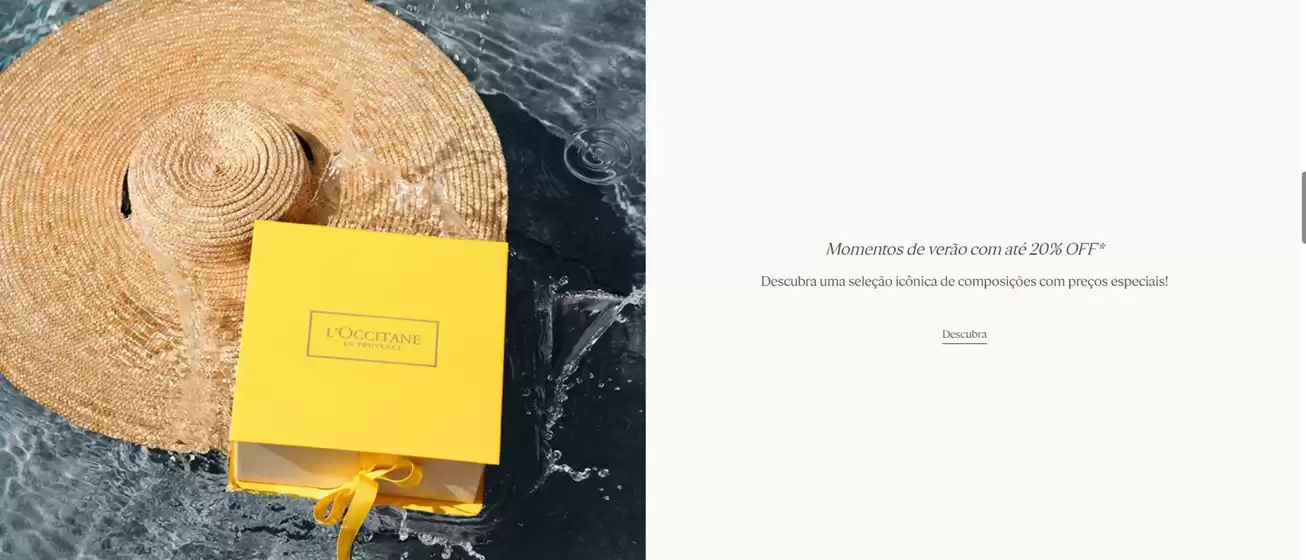 A LOccitane au Brésil conta com cerca de 100 pontos de vendas ao redor do Brasil e faz parte do Grupo L’OCCITANE, presente em mais de 90 países. Confira os catálogos LOccitane no Tiendeo e não perca os melhores cupons de desconto da marca.