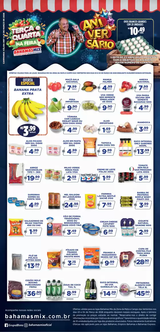 O Bahamas Mix é apelidado carinhosamente de atacarejo e com isso vem conquistando tanto comerciantes como familiares. A rede conta com unidades localizadas em Juiz de Fora, Barbacena, Cataquases, Uberlândia, Muriaé, Leopoldina, Úba, Uberaba, Além Paraíba e São João Del Rei. Conheça o endereço completo de cada uma dessas lojas Bahamas Mix aqui no Tiendeo. Acesse também o site http://www.bahamasmix.com.br.
