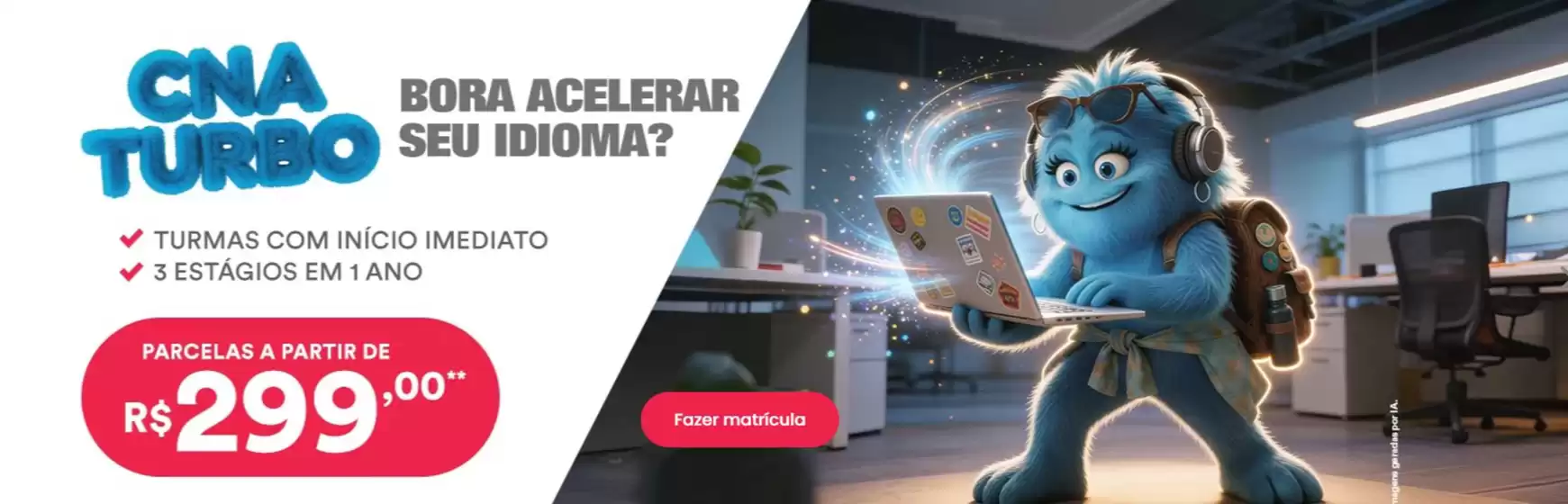 A metodologia de ensino do CNA permite ao aluno falar, ler, escrever e compreender o novo idioma naturalmente, já que é possível vivenciar situações do dia a dia em sala de aula e por meio de uma plataforma de ensino integrada.